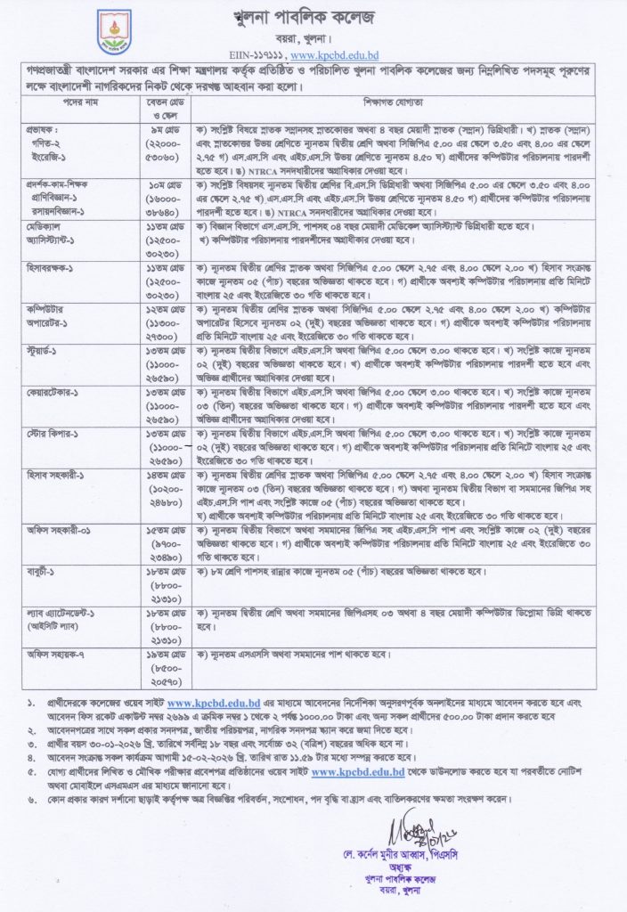 '২০২৫ শিক্ষাবর্ষে খুলনা পাবলিক কলেজ ৬ষ্ঠ শ্রেণিতে কিছু সংখ্যক শুন্য আসনে ছাত্র ভর্তির বিজ্ঞপ্তি। (সংশোধিত) |