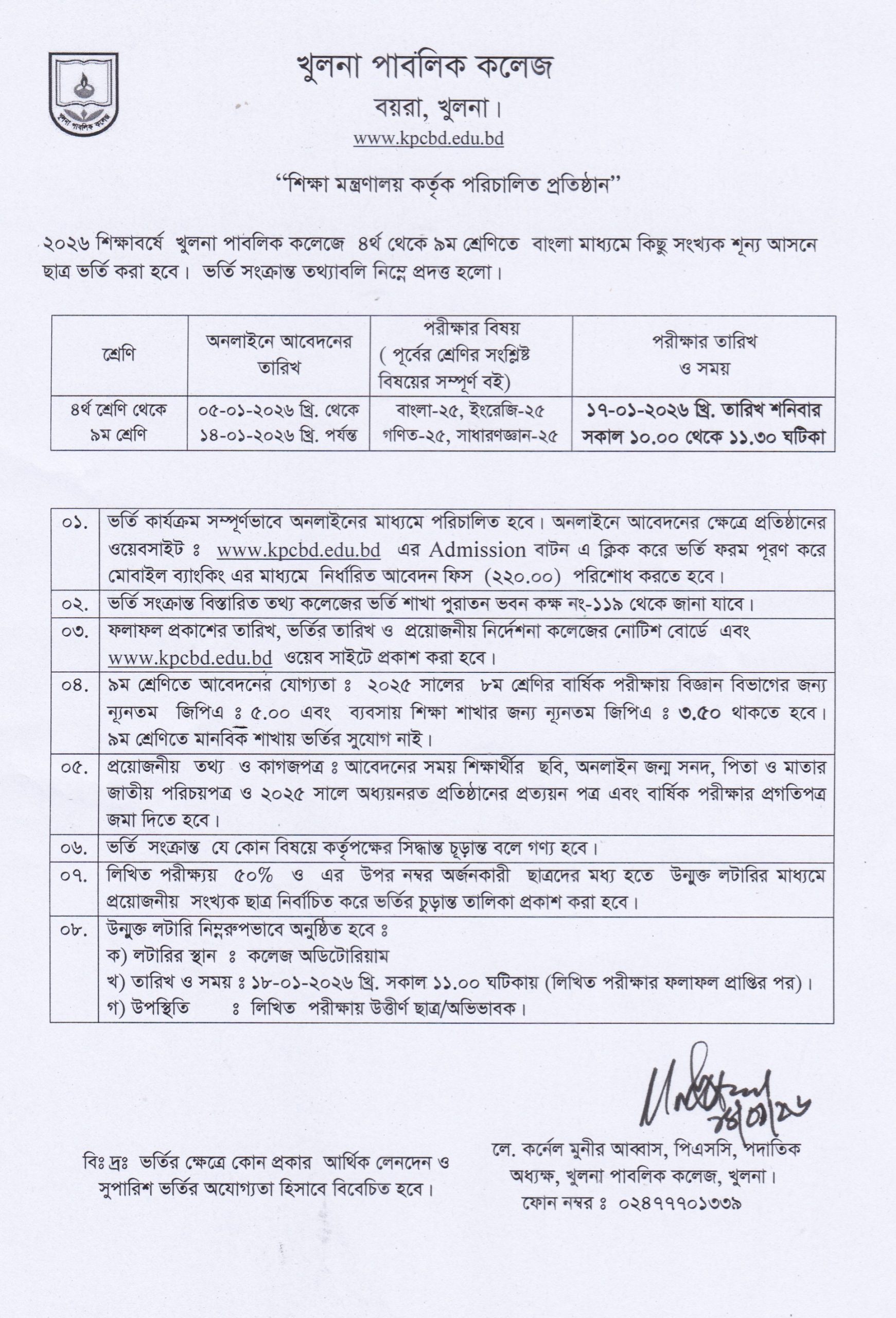 *** ভর্তির বিজ্ঞপ্তি – ২০২৬